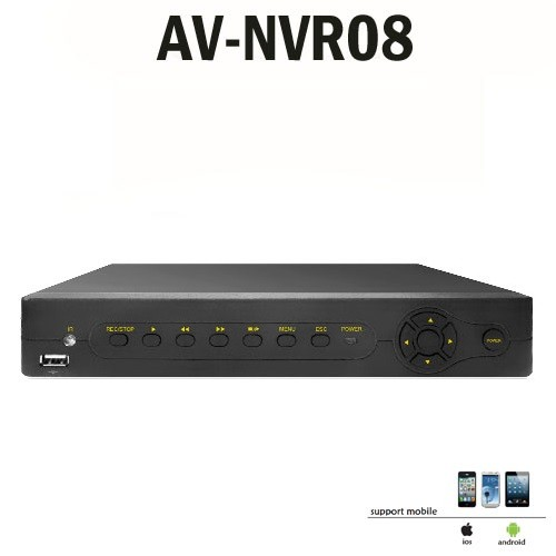 Stokta Yok ! Lütfen Varyant Seçiniz (Renk/Beden) | | | AV-NVR08 | System | Operating System | Embedded LINUX | Video & Audio | IP Camera Input | 8 channel | Two-way Talk | 1 channel Input, 1 channel Output, BNC | Display | Interface | 1 HDMI, 1 VGA, 1 BNC | Resolution | 800*600;1024*768;1280*1024;1440*900;1920*1080 | Display Split | 1/4/8 | OSD | Camera title, Time, Video loss, Camera lock, Motion detection, Recording | Recording | Compression | H.264(High Profile@Level4.2)/ MPEG-4 | Resolution | 5MP(2560×1920) / 3MP(2048×1536) / 1080P(1920×1080) / 720P(1280×720) / D1 (704×576/704×480) | Record Rate | Max 4CH@1080P or 8CH@720P or 8CH@D1 | Record Mode | Manual, Schedule(Regular(Continuous), MD, Alarm), Stop | Record Interval | 1~120 min (default: 60 min), Pre-record: 1~30 sec, Post-record: 10~300 sec | Video Detection & Alarm | Trigger Events | Recording,Alarm,Video Push,Email, Buzzer | Video Detection | Motion Detection?Video Loss?HDD Loss | Alarm Input | 4 channel | Relay Output | 1 channel | Playback & Backup | Sync Playback | 1/4 | Search Mode | Time/Date, Alarm, MD & Exact search (accurate to second) | Playback Functions | Play, Pause, Stop, Rewind, Fast play, Slow play, Next file, Previous file, Next camera, Previous camera, Full screen, Repeat, Shuffle, Backup selection, Digital zoom | Backup Mode | USB Device / Network | Network | Ethemet | RJ-45 port (10/100M) | Network Functions | HTTP, IPv4/IPv6, TCP/IP, UPNP, DHCP, DNS, PPPOE, DDNS | Max.User Access | 20 users | Mobile Phone | IPhone, IPad, Android | Storage | Internal HDD | 2 SATA ports, up to 4TB | Auxiliary Interface | USB Interface | 3 ports (1 Rear), USB2.0 | RS232 | Yes | RS485 | 1 port, For PTZ control | General | Power Supply | DC12V/4A | Power Consumption | 10W(without HDD) | Working Environment | -10 ~+55°C / 10~90%RH / 86~106kpa | Dimension(W*D*H) | 1U,315*274*45 (mm) | Weight | 1.5-2.0kg(without HDD) |