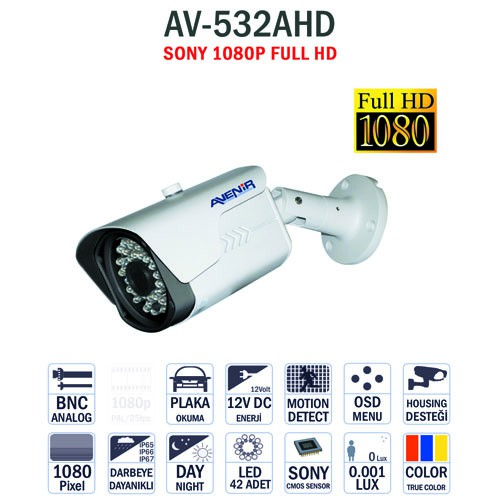 1080p, 1/2.8" Sony Exmor 1/2.8"IMX322 +Nextchip 2441+42IR leds 3.6mm lens +osd, Bullet Dış Mekan MP Analog High Definition Kamera, Analogy HD AHD 3DNR,Anti Foggy, DWDR, HD-AHD,OSD cable Vandalproof IR Bullet Camera 42 IR leds Range 60M Board lens Water resistance: IP66 Weight:0.5Kg White