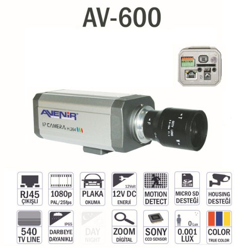 Stokta Yok ! Lütfen Varyant Seçiniz (Renk/Beden) MODEL | AV-600 Full D1 İP Kamera | Resim Sensor | 1/3" SONY Super HAD CCD | Yatay Çözünürlük | 540 TVL (Görüntü Kalitesi) | SıkıŞtırma Formatı | MPEG4 / h.264 | Çözünürlük | 1600x1200; 1280x720; 1024x768; 800x592; 800x480 | Display Frame Oranı | 25 fps@ 1600x1200 | Alarm GiriŞi / ÇıkıŞı | 1 kanal / 1 kanal | Alarm | Motion, Sensor Alarm, Email, Ftp, Ses Alarm, Pop up alarm kayıt | Mobil | 3G Mobile | Ses GiriŞi | G.726, 60 dB üzeri, 16K, 20Kbits | Network | RJ45, TCP, UDP, HTTP, RTP, DDNS, DHCP, PPPoE, FTP, | Sistem | CPU: 32 Bit RISC Processor Ram: 256 M DDR2 ROM: 8MB Flash Rom | Kayıt | SD Kart, NVR Kayıt, Alarm Kayıt, Motion Kayıt, Uzaktan Kayıt | Ekran | Aynı and 64 ekran ücretsiz program | PC Gereksinimleri | Windows 2000, XP, Vista, Win7, IE 6.0 ve üzeri, DirectX 9.0 |